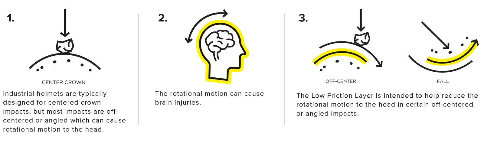 • Mips© safety system – Providing exceptional protection, The Mips® safety system features a low-friction layer inside a safety helmet or hardhat that allows a multi-directional movement of 10-15mm on certain angled impacts, intended to help reduce rotational force to the head.