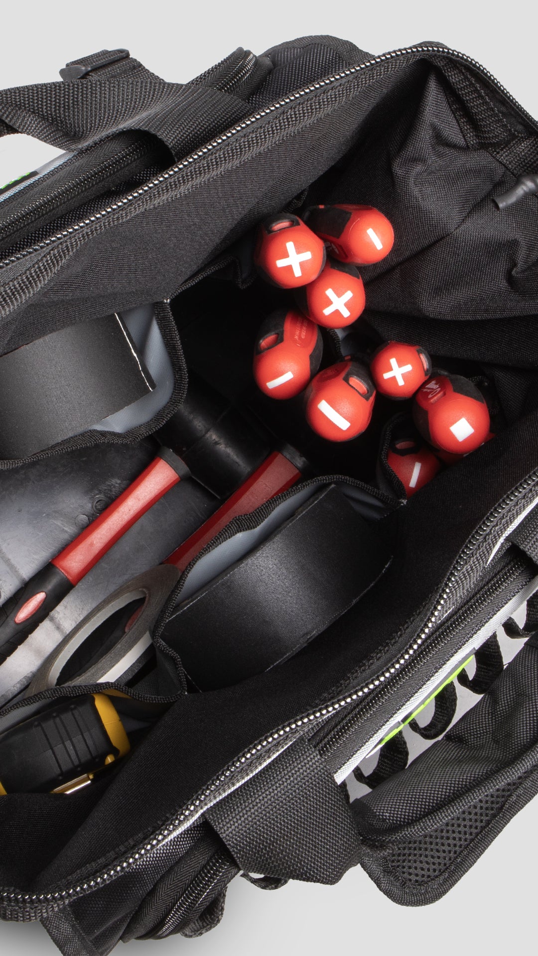 Customize your bag, with velcro patch for custom patches, making your bag easy to identify on busy job sites.